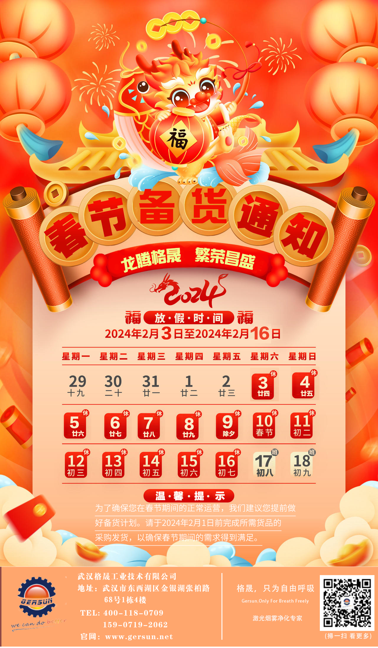 武漢格晟2024年春節備貨通知